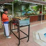 호텔의 손님들이 신선한 음료를 마시며 테라스 바에서 휴식을 취하실 수 있습니다.